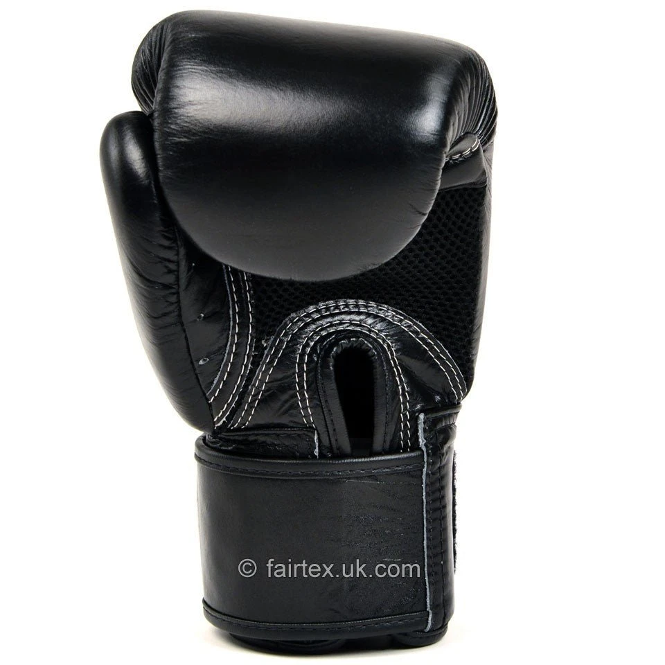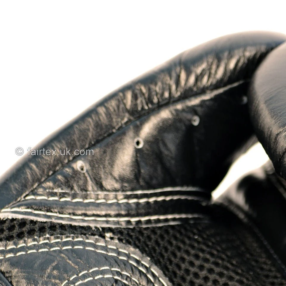 The Black Fairtex Breathable Boxing Glove is the “Breathable” version of the BGV1. Adding a ventilation strip across the palm of the hand allowing the glove to “breathe” and reducing internal moisture damage as well as helping to cool the glove whilst in use. As a result lower palm protection present on the standard BGV1 is removed. The Fairtex boxing glove is a small fit and has a short wrist cuff. Loved in the UK and USA by both Thai boxers & MMA Fighters. Engineered with a oversized hand compartment and triple-layered foam core to provide maximum protection during training and sparring these gloves have been handmade in Thailand the home of top quality Muay Thai equipment.