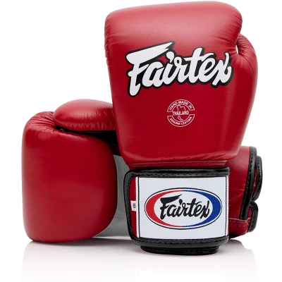 The Fairtex BGV1 Muay Thai Boxing Gloves are high-quality gloves designed for training and competition in the sport of Muay Thai. Made from premium leather, these gloves are built to last and provide excellent protection for both the user and their training partner. The gloves feature a unique contoured and snug fit, which allows for easy and comfortable hand movement during training sessions. The padding in the gloves is strategically placed to provide maximum protection and support for the hands and wrists. The gloves also feature a Velcro closure system for a secure and customizable fit. Overall, the Fairtex BGV1 Muay Thai Boxing Gloves are a top-of-the-line choice for anyone looking to take their training to the next level.
