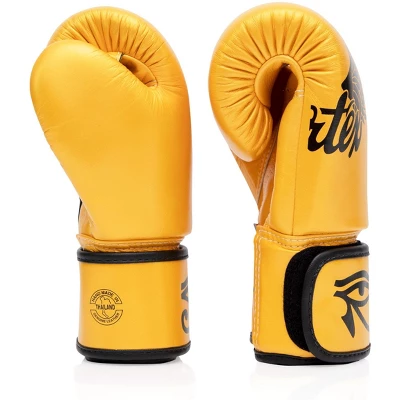 The Fairtex BGV1 Muay Thai Boxing Gloves are high-quality gloves designed for training and competition in the sport of Muay Thai. Made from premium leather, these gloves are built to last and provide excellent protection for both the user and their training partner. The gloves feature a unique contoured and snug fit, which allows for easy and comfortable hand movement during training sessions. The padding in the gloves is strategically placed to provide maximum protection and support for the hands and wrists. The gloves also feature a Velcro closure system for a secure and customizable fit. Overall, the Fairtex BGV1 Muay Thai Boxing Gloves are a top-of-the-line choice for anyone looking to take their training to the next level.