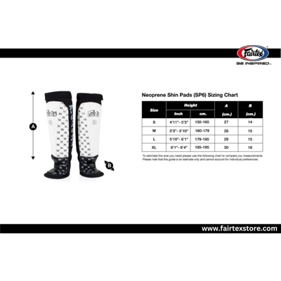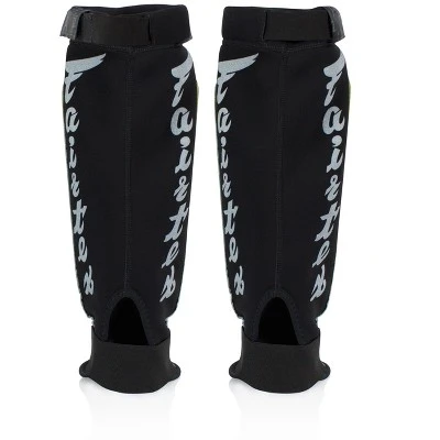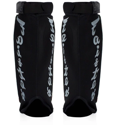 These Fairtex Neoprene Shin Guards have reinforced padding at the shin to help protect against injury but yet are sleek enough to allow for all types of grappling movements during MMA sparring. They are lightweight, durable, and provide complete protection for both the shin and instep. This design makes them perfect for both competition and sparring. The addition of a hook & loop cover over the elastic band at the top assures a secure fit every time.