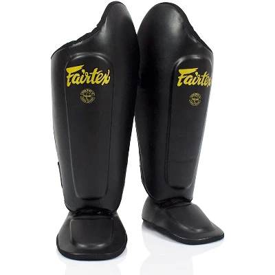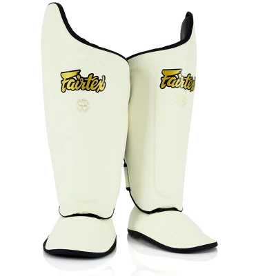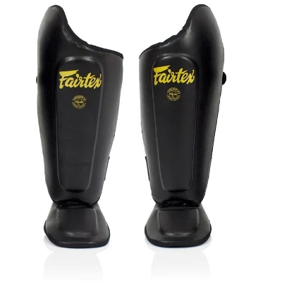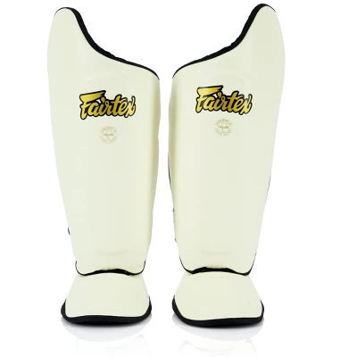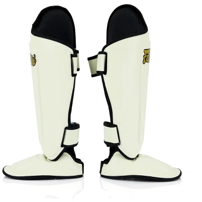 - Fairtex Ultimate Shin Pads are constructed from Syntek leather with heavy-duty water-resistant and non-tear nylon lining for durability and long-lasting use.Â